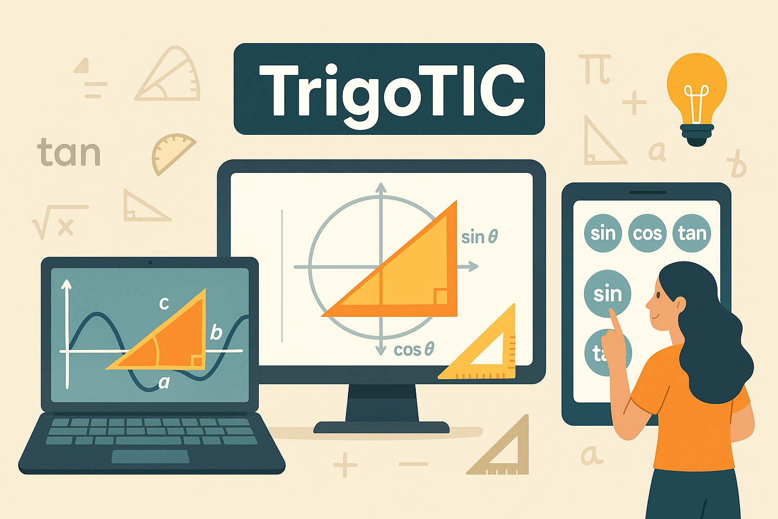 TrigoTIC es una estrategia TIC-pedagógica diseñada para fortalecer las competencias matemáticas y digitales de los estudiantes mediante el aprendizaje interactivo de la trigonometría. A través de simulaciones, videos, juegos y recursos digitales, los participantes explorarán las razones trigonométricas, sus aplicaciones en contextos reales y el uso de herramientas tecnológicas que promueven un aprendizaje significativo, autónomo y colaborativo.